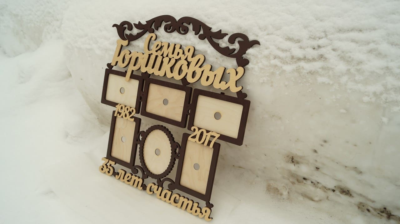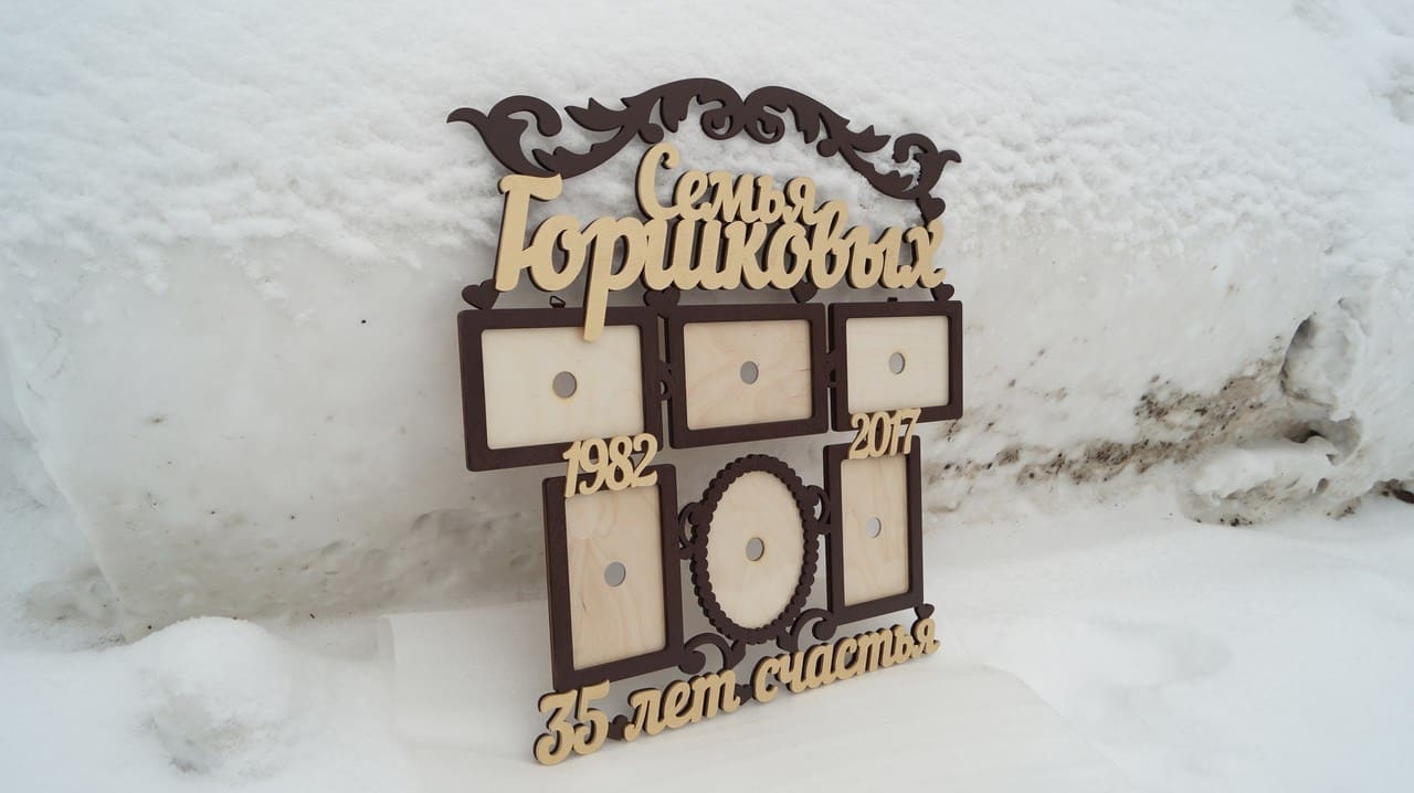 Деревянная фоторамка «35 лет счастья» хотя и была изготовлена по индивидуальному заказу, но является отличной визитной карточкой нашей мастерской. Ее стоимость изначально оговаривается с заказчиком, как и материал, модель, форма и покраска. Соотношение «цена-качества» у нашей продукции выведено на высокий уровень и с этим не могут поспорить даже самые требовательные или капризные клиенты.