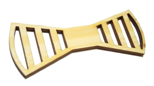 Лазерная резка – это один из универсальных методов вырезки мелких деталей, без ущерба для материала. Деликатный способ обработки дерева, при помощи лазерной резки, позволяет добиться высокой точности самых маленьких деталей без рваных и ломких краев. Благодаря толщине лазерного луча возможно самое минимальное расстояние между деталями, что делает конечную продукцию изысканной и утонченной. При этом трудозатраты минимальные, а значит – высокие объемы производства. Поэтому если вы хотите заказать оптом деревянные бабочки галстуки, то мы гарантируем высокое качество нашей продукции.