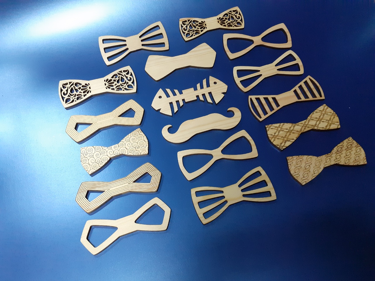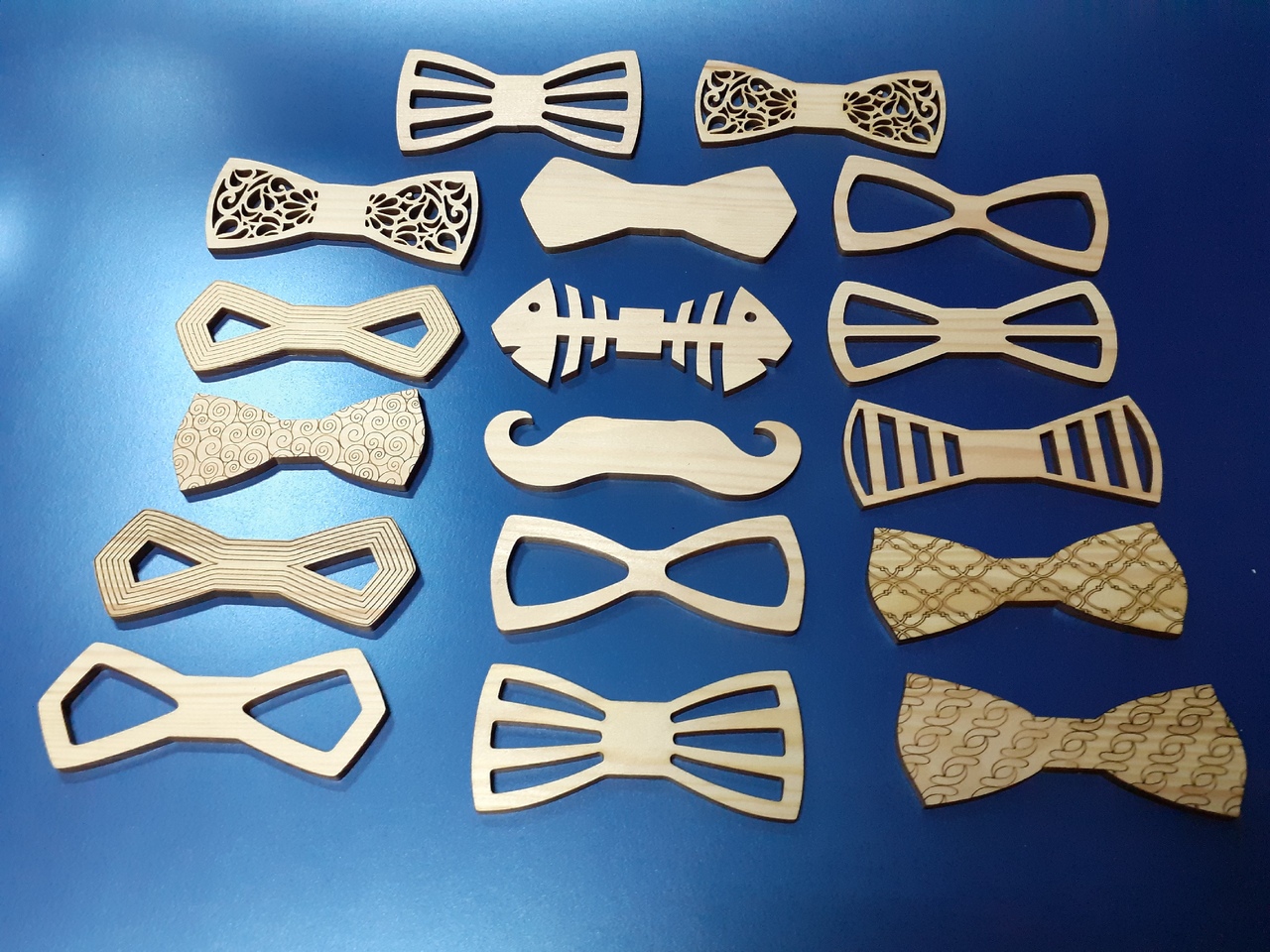 Мы производим заготовки деревянных бабочек-галстуков при помощи лазерной резки на собственном оборудовании.