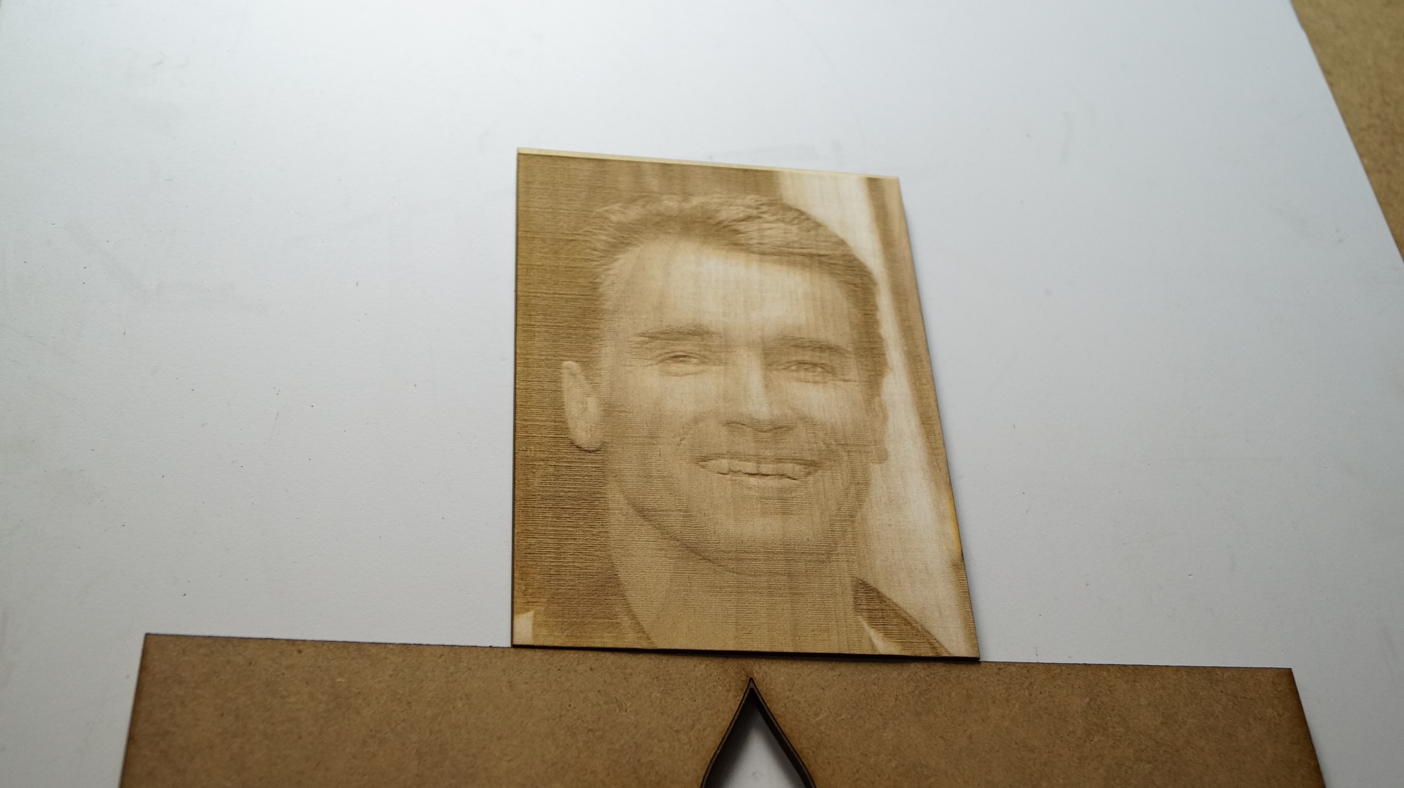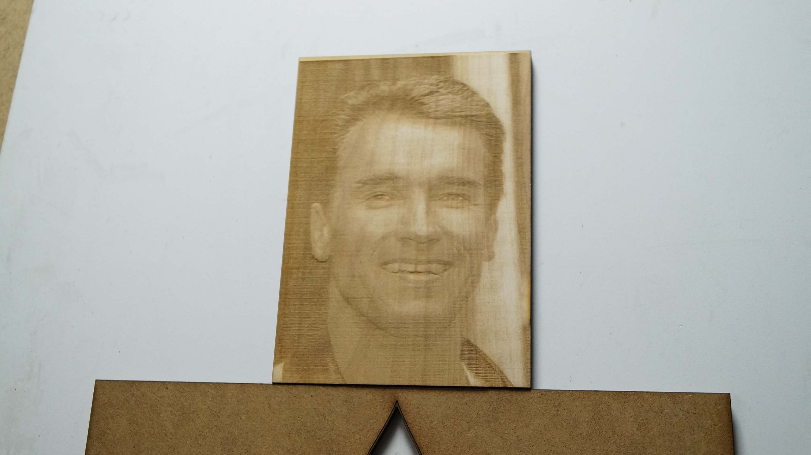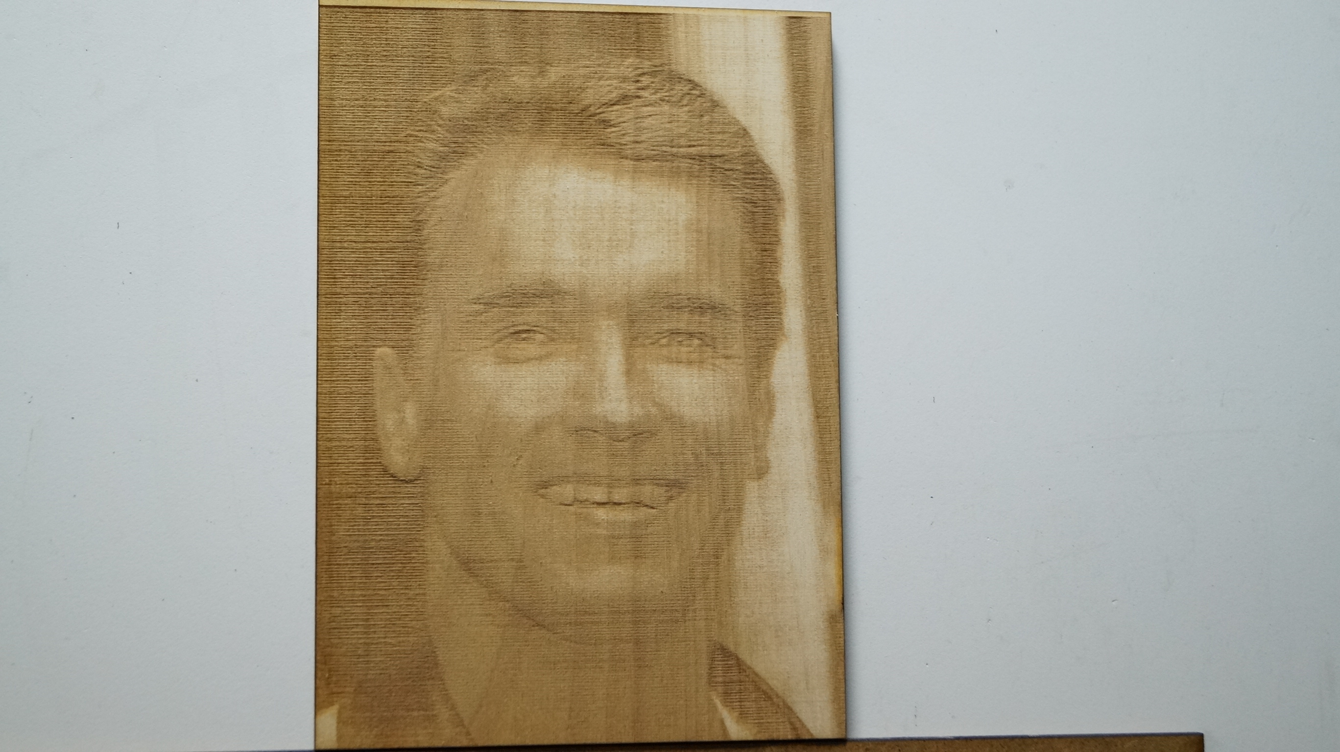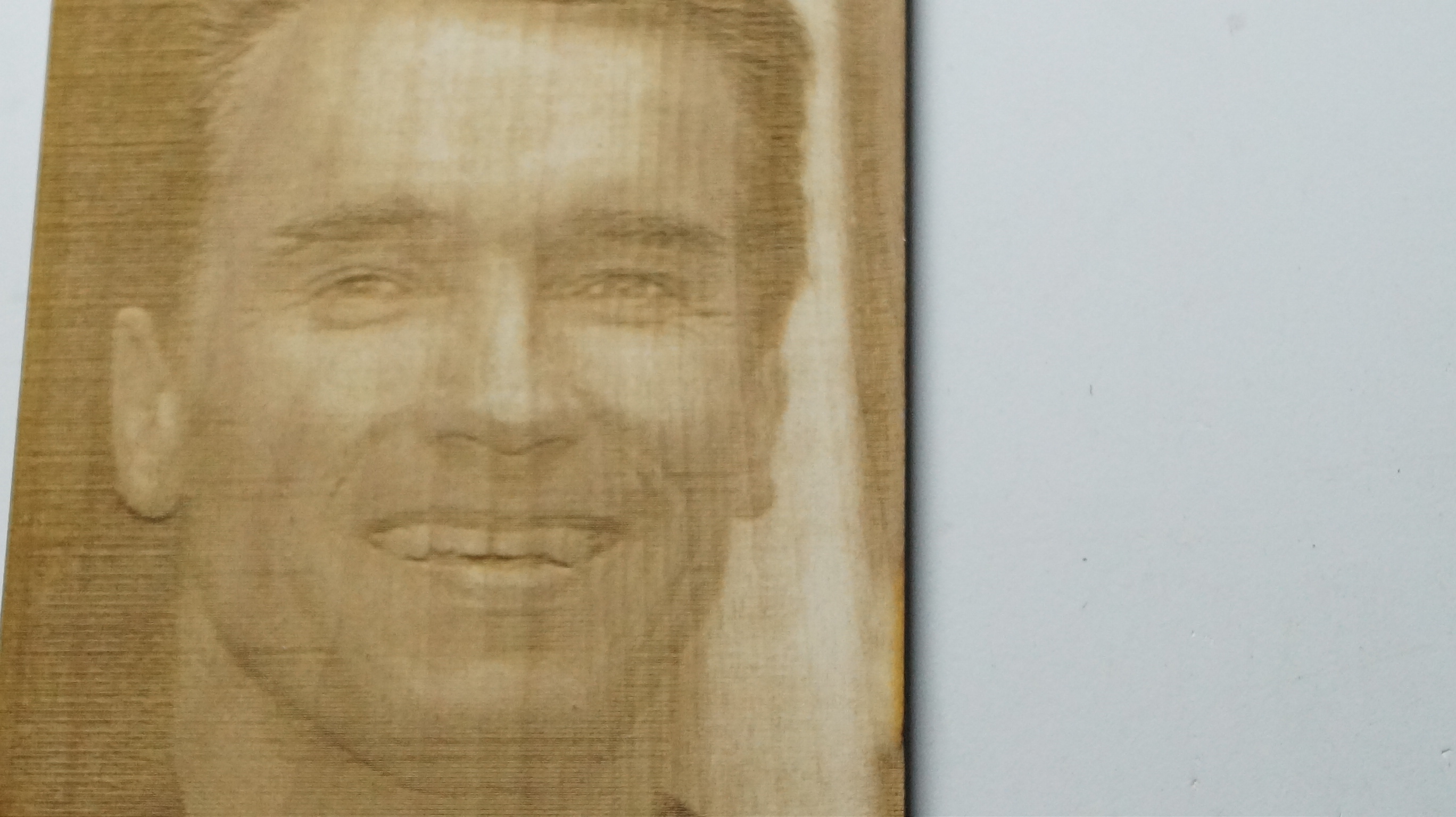 Как можете видеть гравировка получилась довольно так и рельефной и четко видно черты лица Шварцнегера. Самое важное при гравировке на фанере, это правильно подготовить изображение для гравировки.