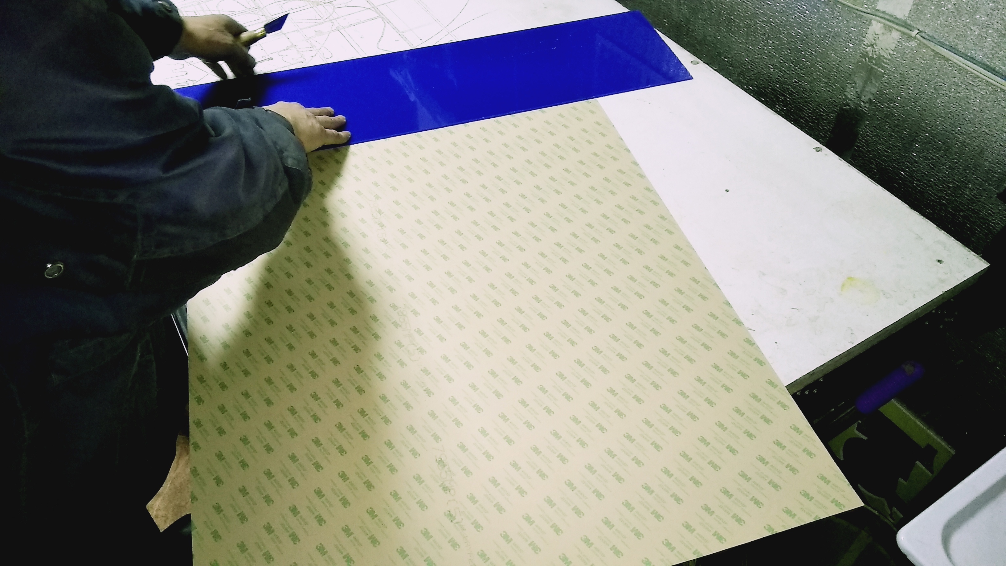 Для удобства монтажа логотипа и всех надписей мы использовали двусторонний листовой скотч 3М, который отличается своей прочностью приклеивания и надежностью в отличии от рулонного Орабонда. Размеры такого листа 600х900 мм.