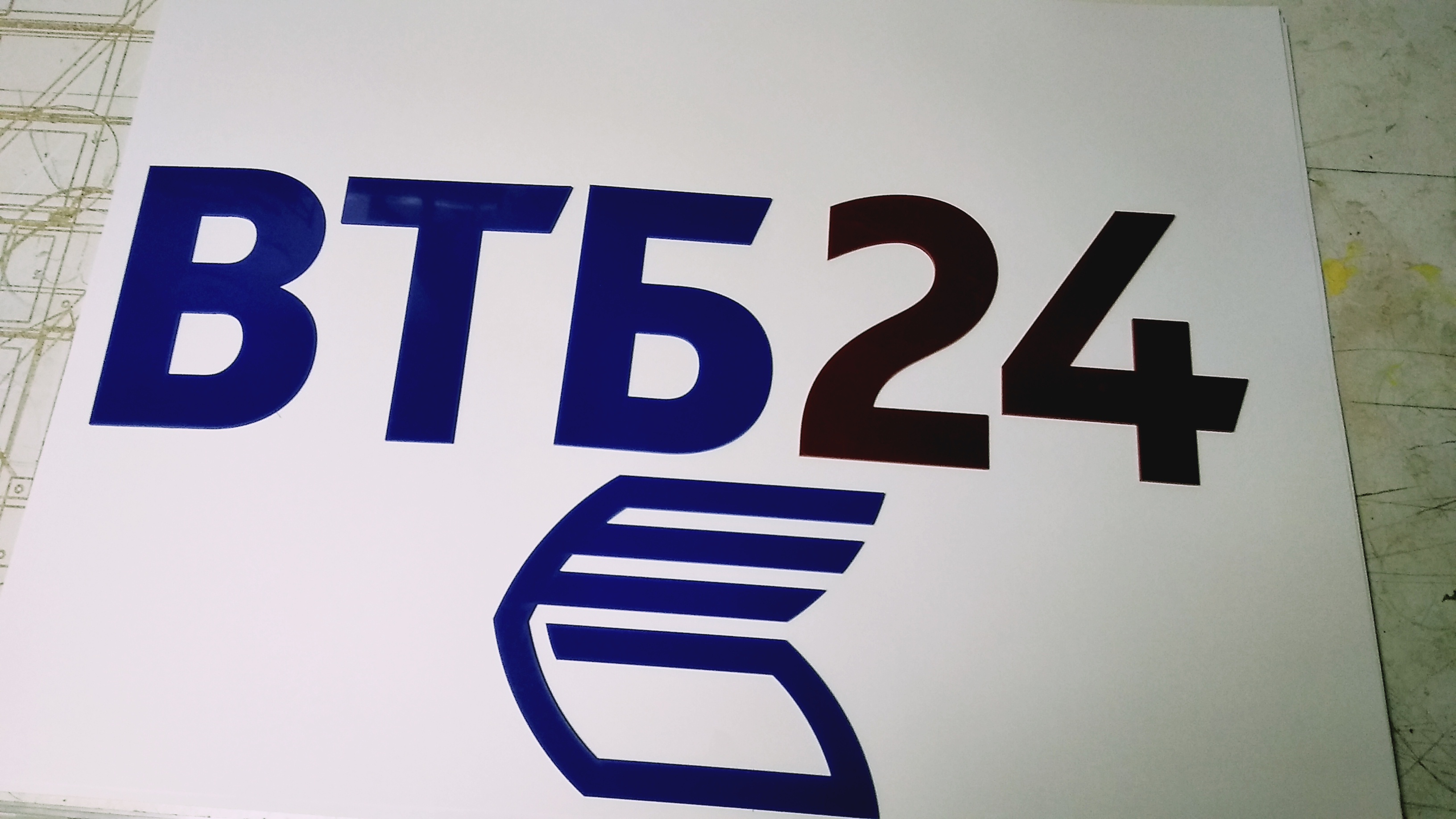 Лазерная резка акрила для логотипа ВТБ 24