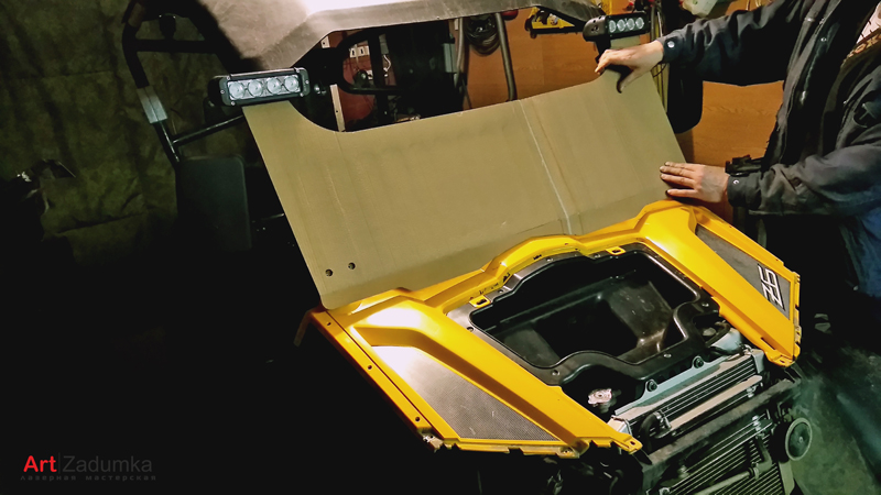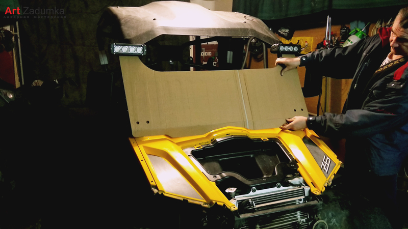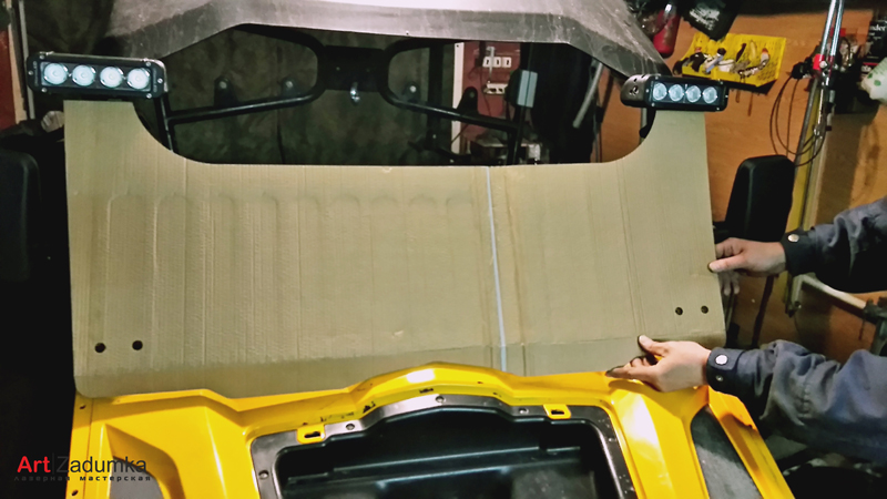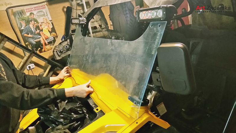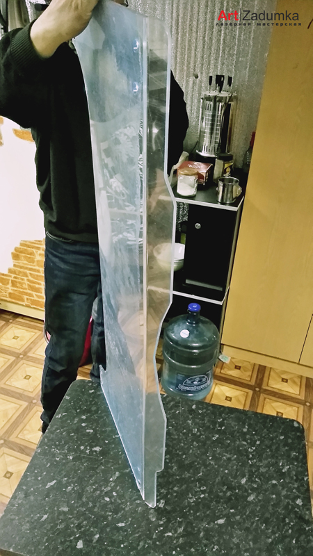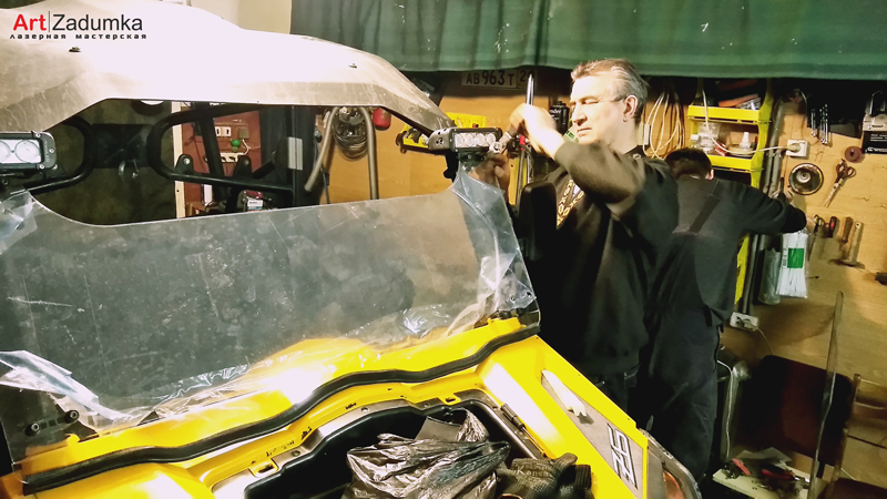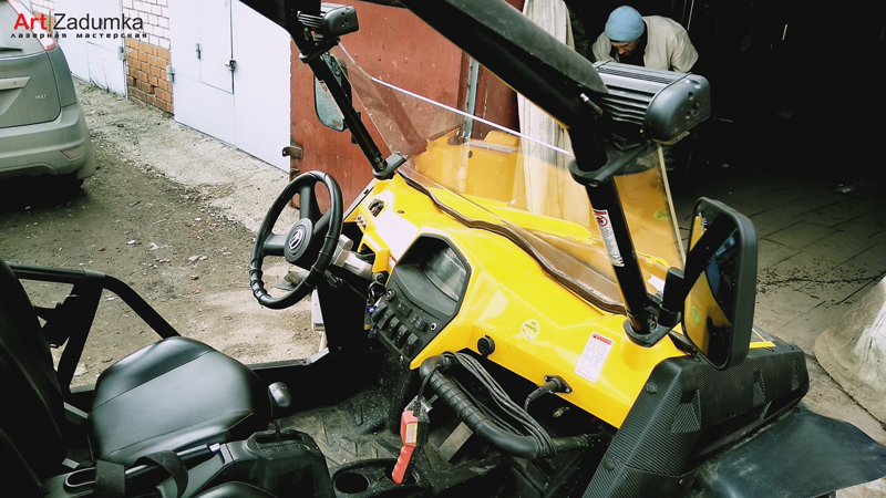 В нашу мастерскую поступил заказ изготовить защитное стекло для квадроцикла, материал для изготовления ветрового стекла был выбран оргстекло толщиной 6 мм., с увеличением размера самого стекла в высоту на 18 см. Так же в задачу мастерской было поставлено по образцу старого стекла изготовить макет, вырезать на лазере само стекло с последующим загибом нижней части самого стекла.