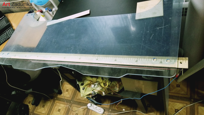 Пройдя все окончательные замеры и согласование, приступили непосредственно к лазерной резке оргстекла 6 мм. И последующей загибке оргстекла на нихромовой струне. Загибка на нихромовой струне является самым распространенным методом гибки как оргстекла так и других видов пластика, в отличии от гибки при помощи фена сам загиб можно сделать максимально прямым.